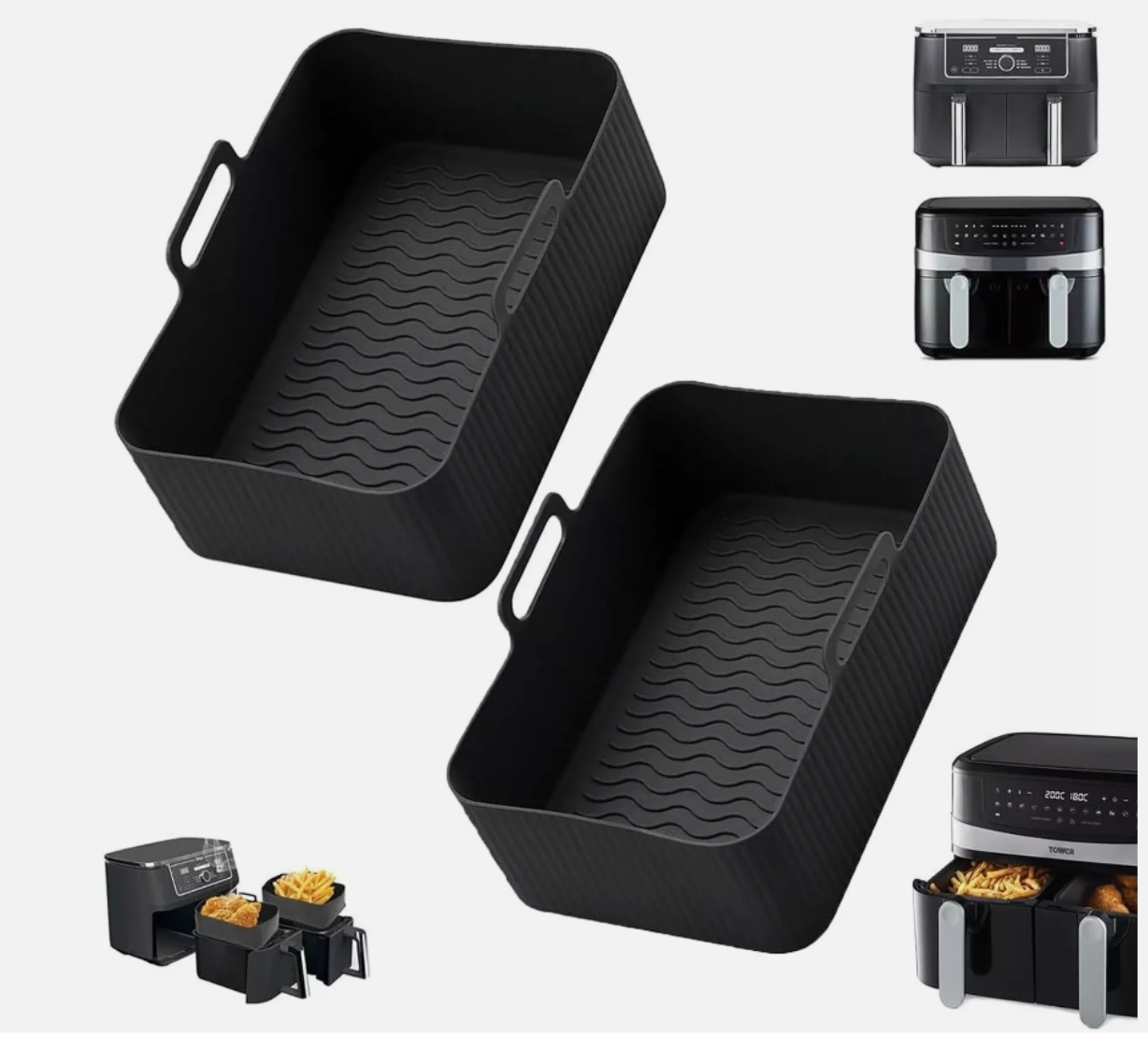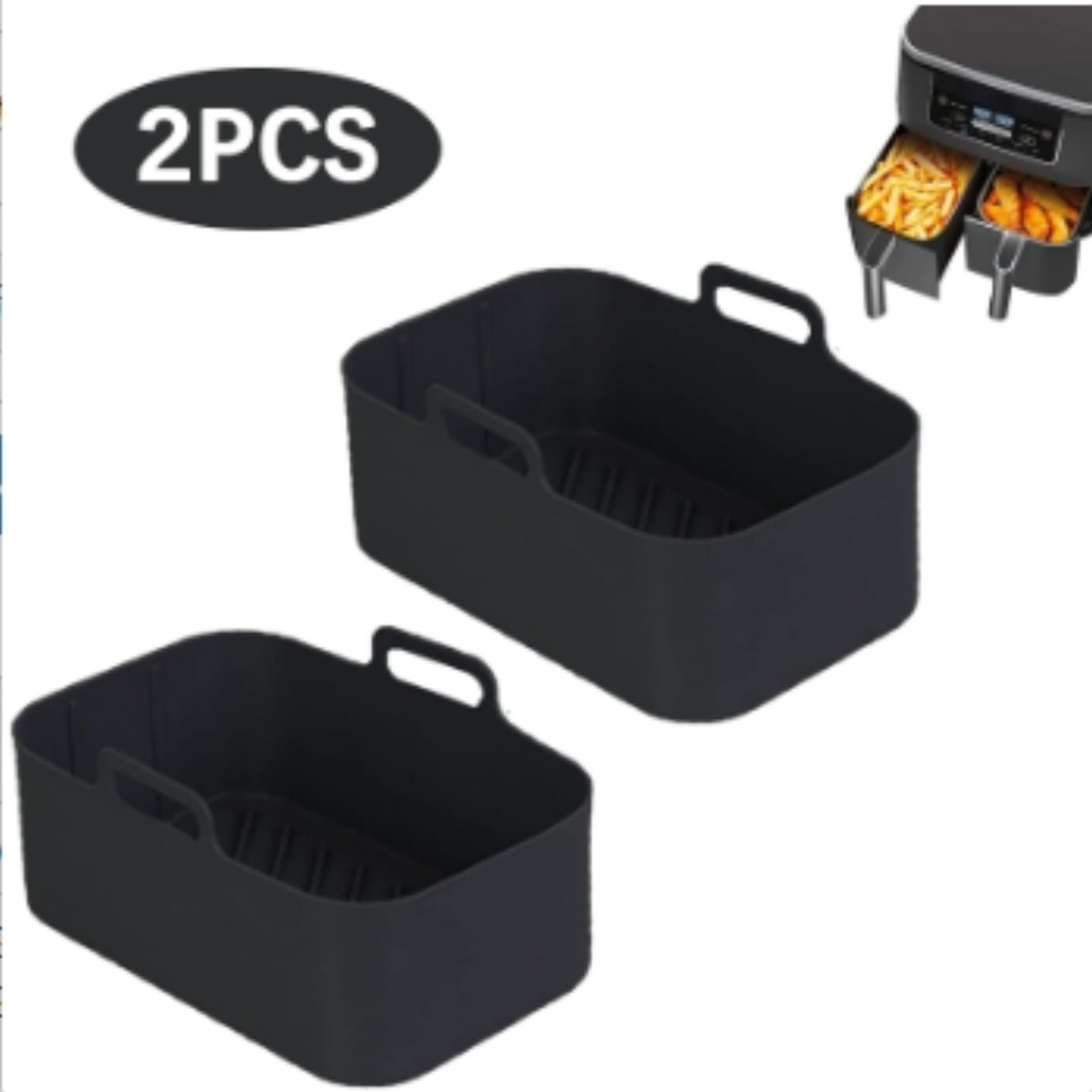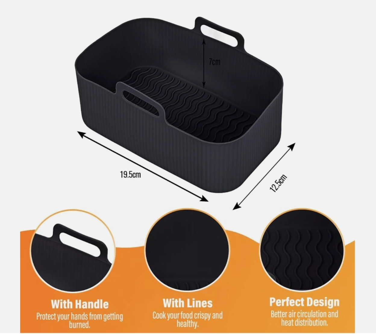 2Pcs Air Fryer Silicone Pot Rectangle Baking Tray Basket Liners Insert Dish UK
