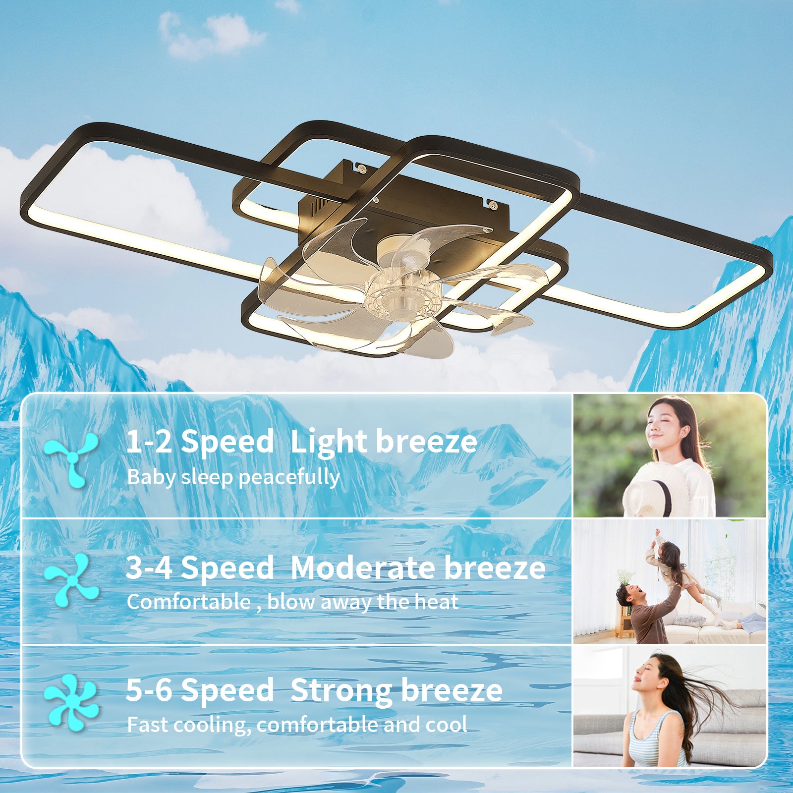 - Remote & APP Control: The ceiling fan lights has a reverse function, 6 wind speeds,1/2/4h timing, and all the functions can be operated by the hand-held remote or APP.