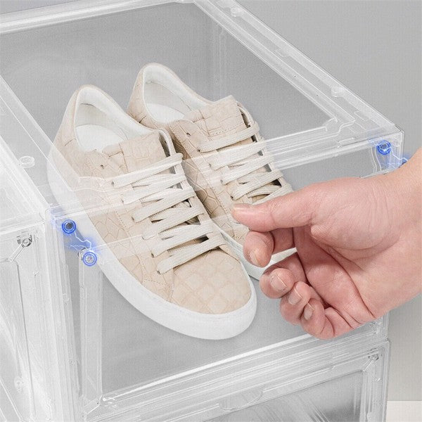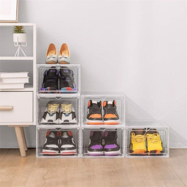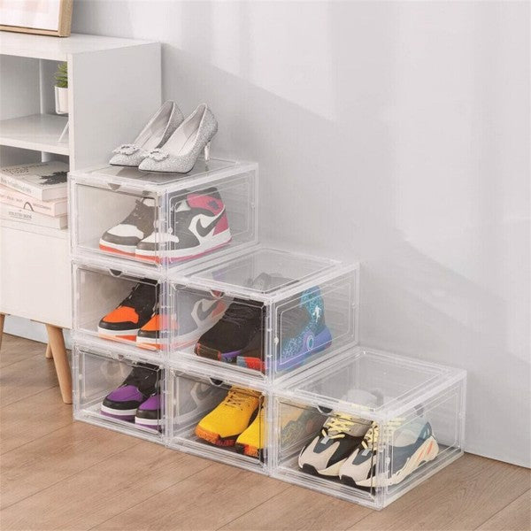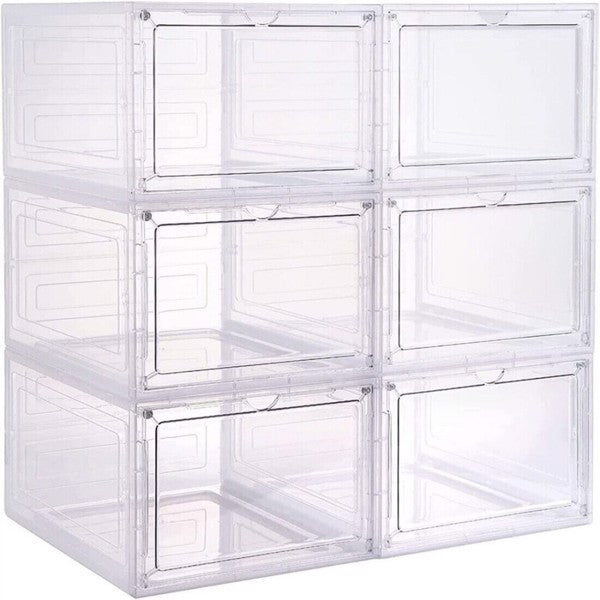 6 Pack Transparent Shoe Storage Boxes Hard Plastic Stackable Shoe Box Organiser