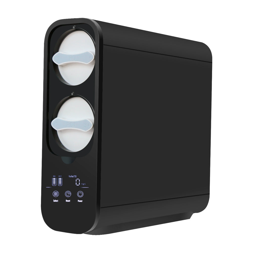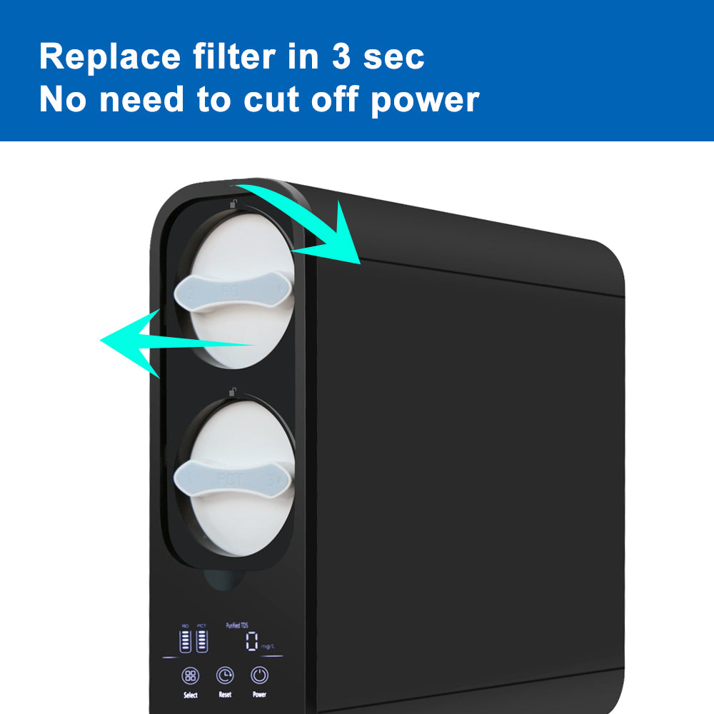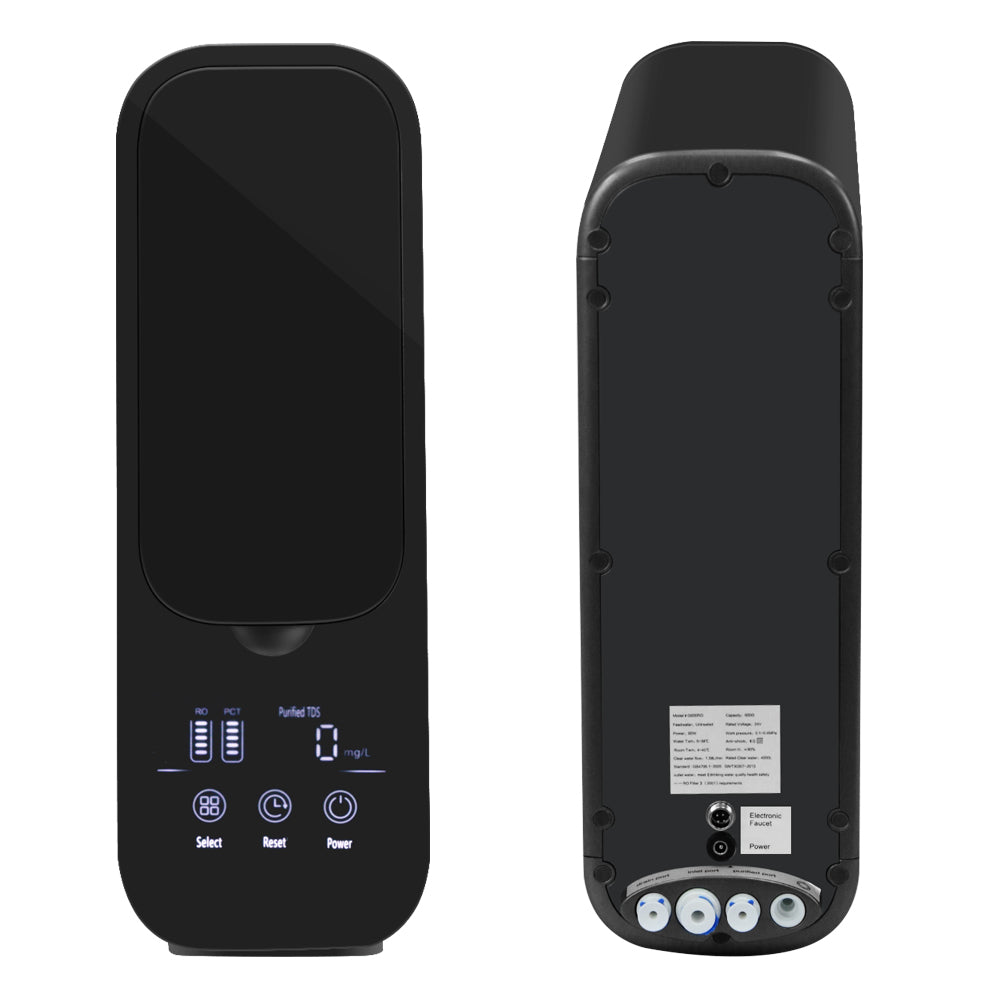 1.No tank structural design saves over 70% more under-sink storage space than the ordinary RO system.The advanced integrated design of the electrical and water circuits reduces leakage,and easy to Installation only three pipes need to be inserted correctly to connect the RO water filter.