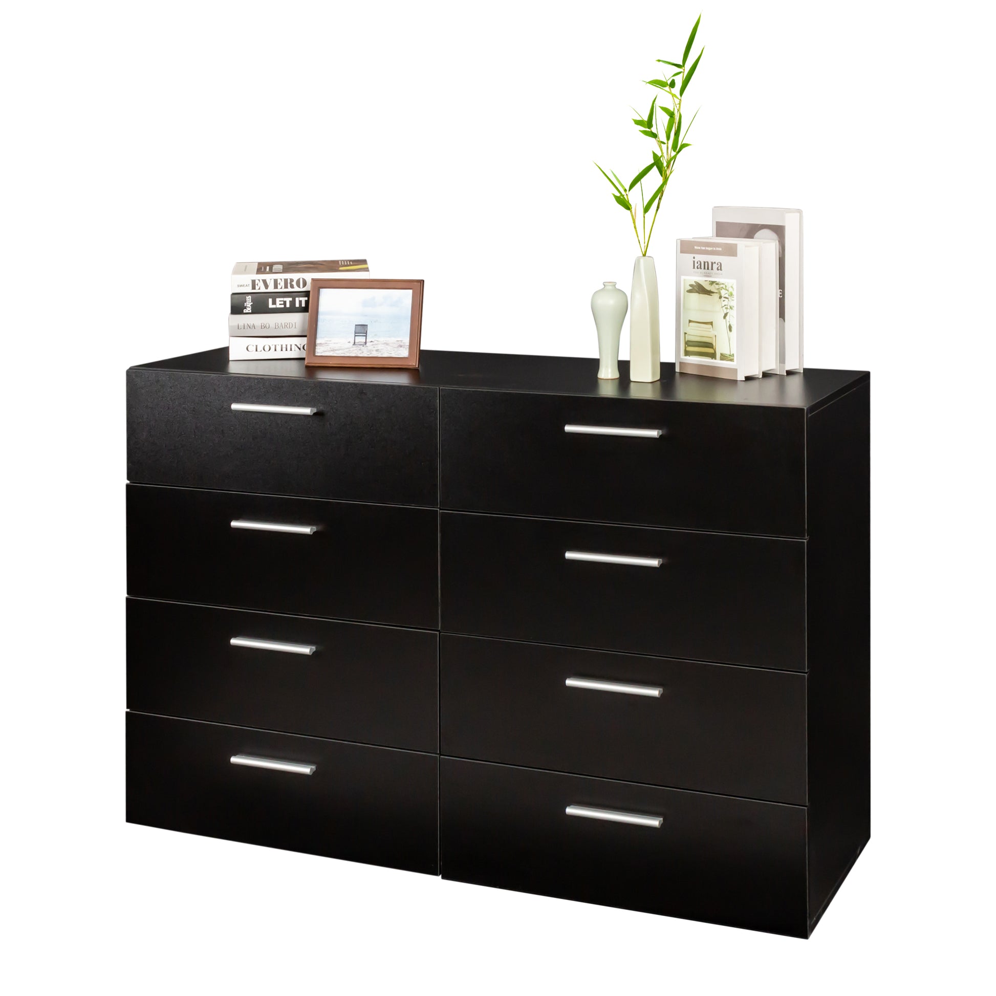 8 Drawer Double Dresser for Bedroom, Wide Storage Cabinet for Living Room Home Entryway, Black