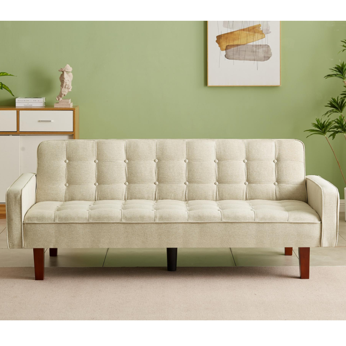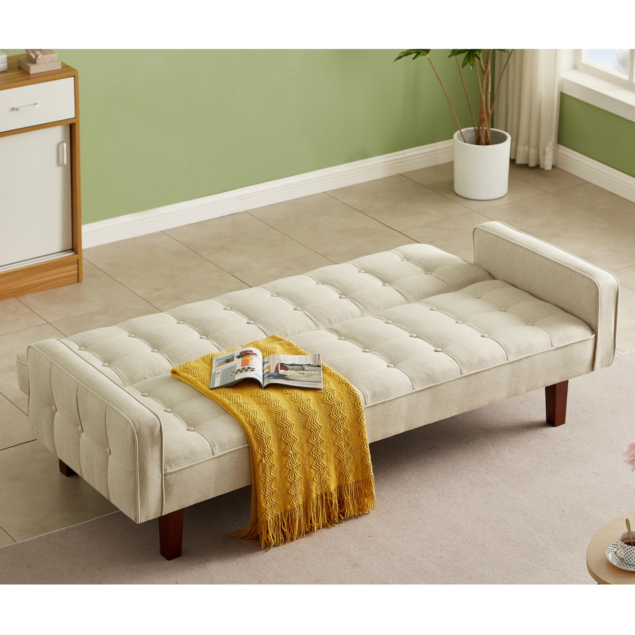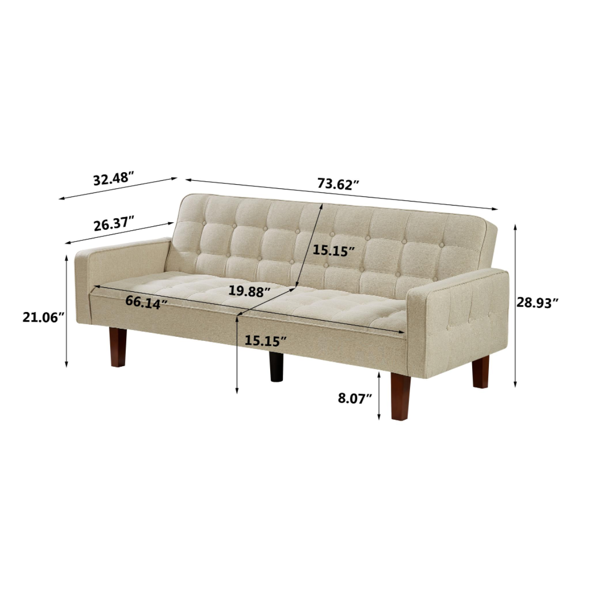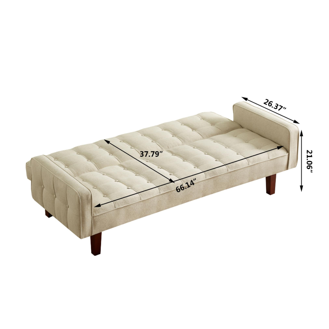 Beige, Linen Futon Sofa Bed 73.62 Inch Fabric Upholstered Convertible Sofa Bed, Minimalist Style for Living Room, Bedroom.