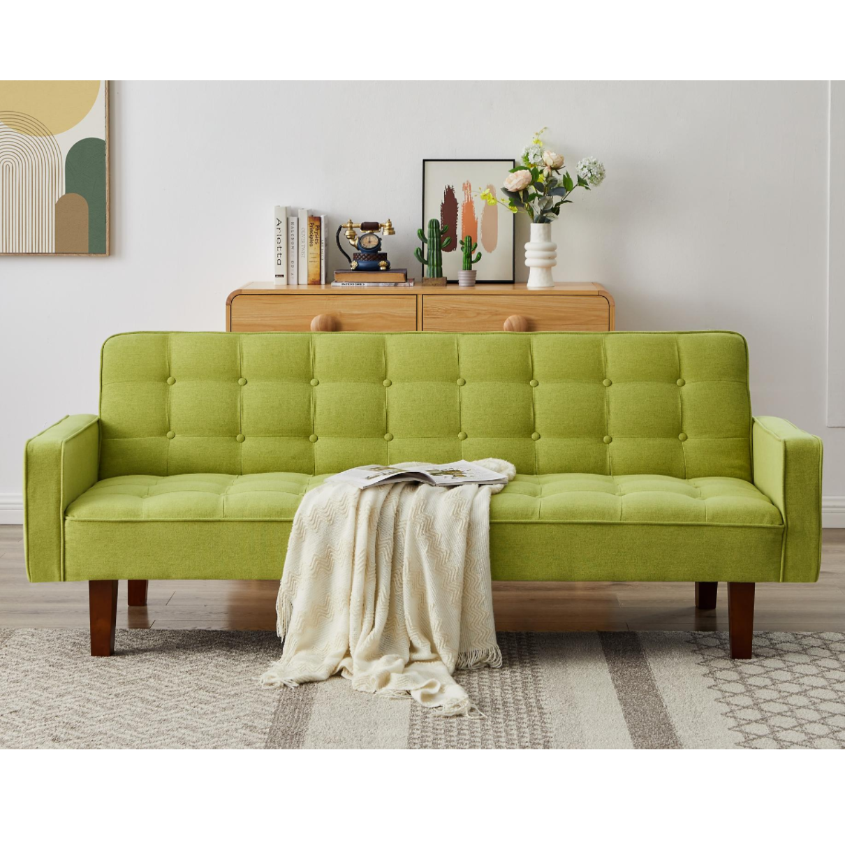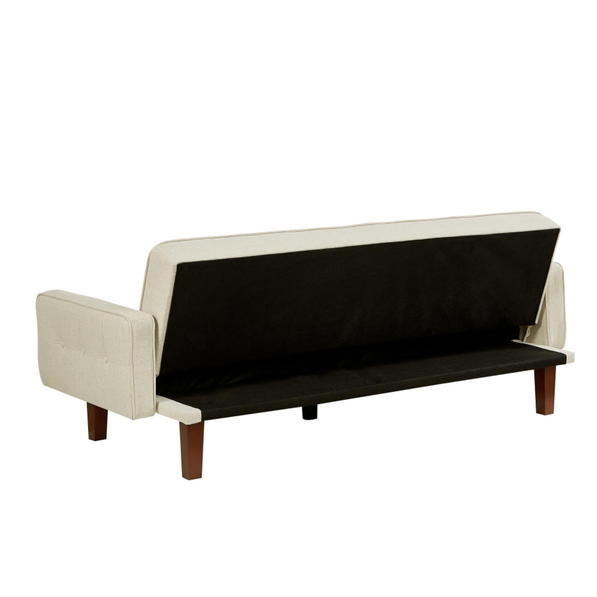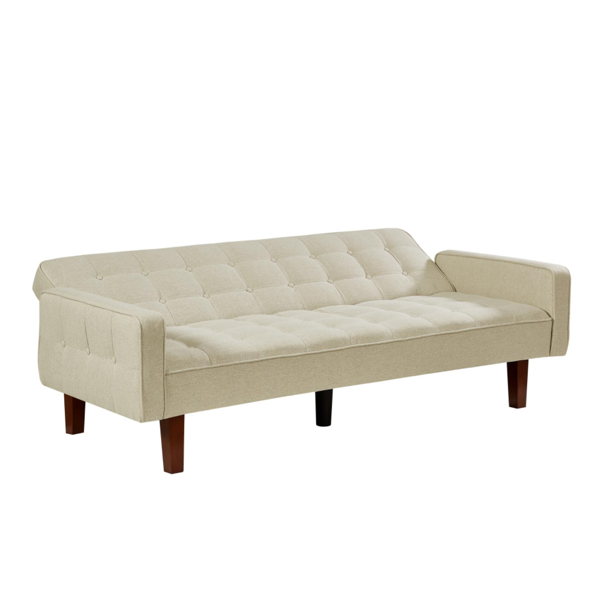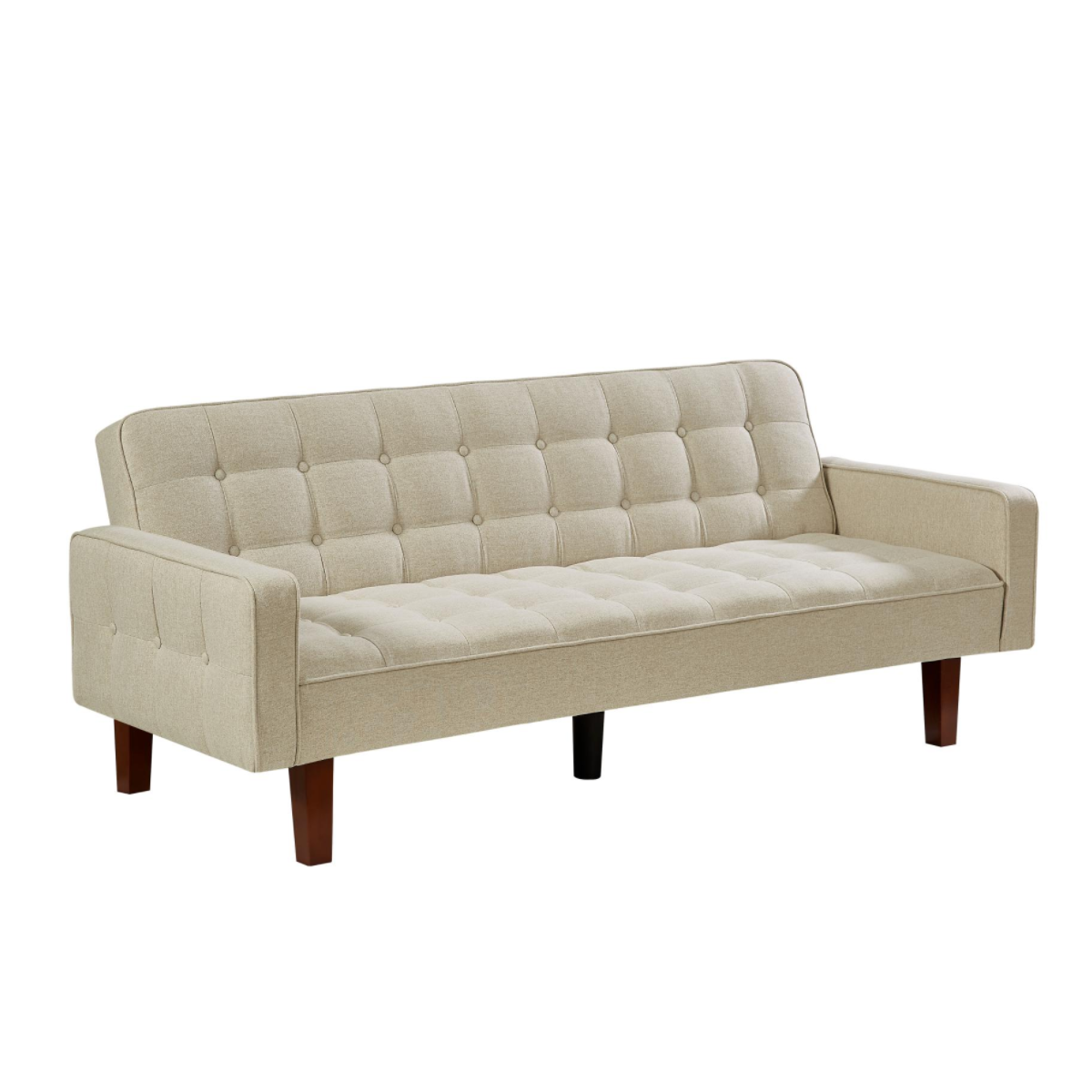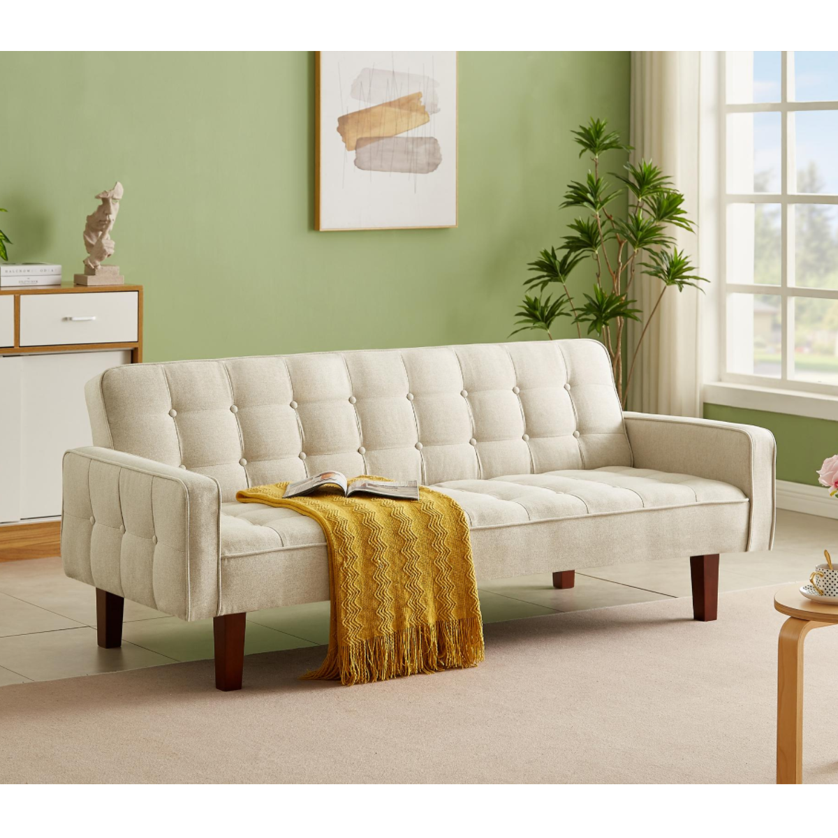 Beige, Linen Futon Sofa Bed 73.62 Inch Fabric Upholstered Convertible Sofa Bed, Minimalist Style for Living Room, Bedroom.