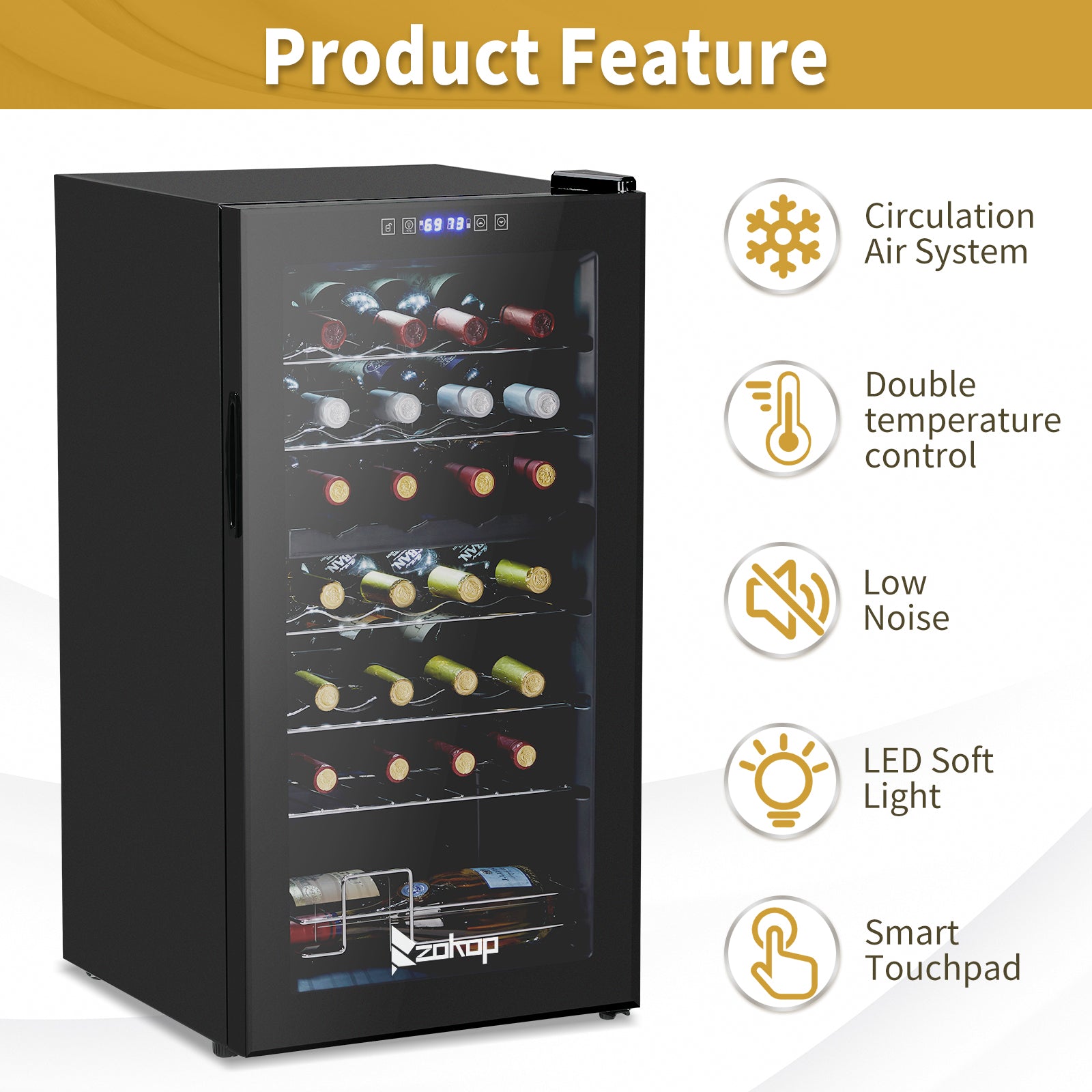 Dual Zone Wine and Beverage Refridgerator, 28 Bottle Wine Fridge with Independent Temperature Control & Glass Door, Freestanding Wine Cooler Chiller for Wine Champagne Beer