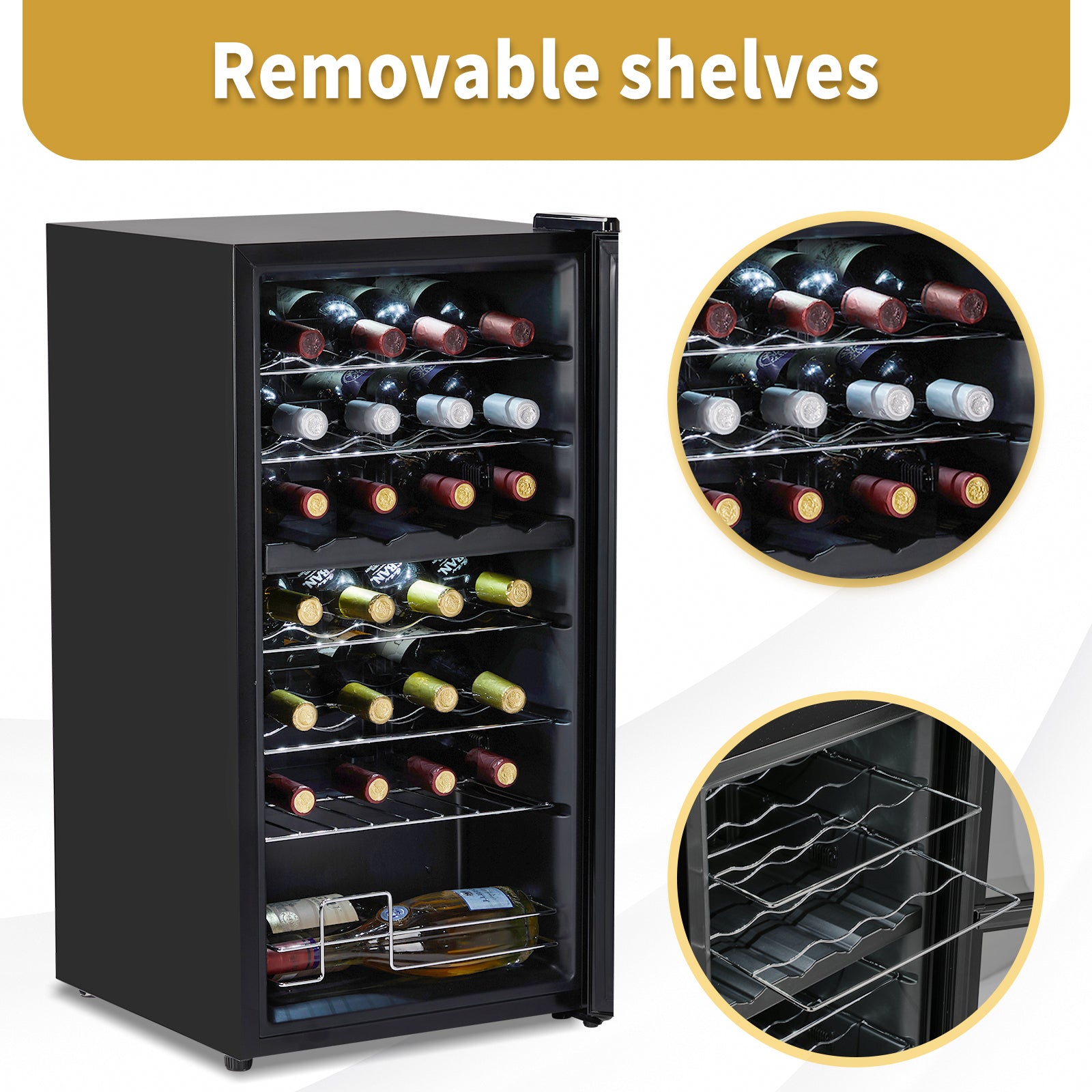 2. Large Capacity with Adjustable Shelves: This versatile wine and beverage fridge holds up to 28 bottles of wine, 115 cans of beverages, or a combination of 12 bottles and 65 cans. Adjustable chrome-plated shelves easily accommodate different bottle shapes and sizes.