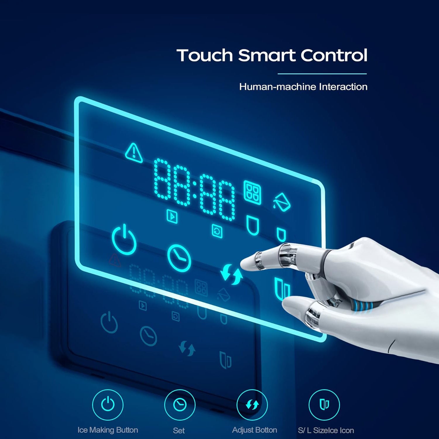 - Human-machine Interaction: Touch-control LED Display panel is smarter, simpler, and more sturdy. This high-end panel includes a time reservation function on the bullet ice maker, which lets you set a start time for ice-making. This feature helps you make enough ice without having to wait. Besides, the LED panel can display the timer, add water, and full ice, so you don't have to check them manually. It's a helpful assistant for you.