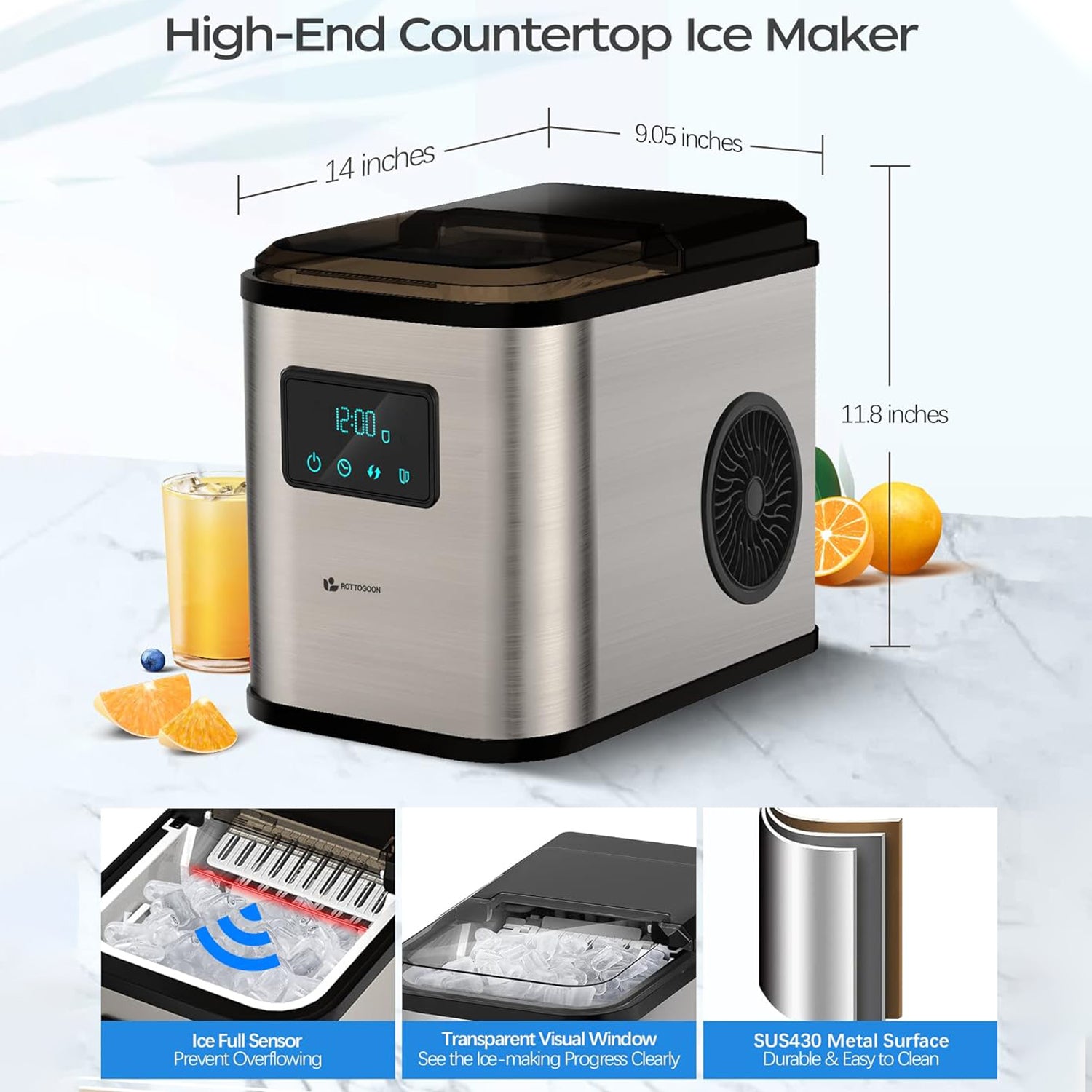 - Hands-Free Self-Cleaning: Don't worry about mold anymore, the self cleaning ice makers countertop lets you hands-free. Under standby mode, just add water and press the ice-making button for 3 seconds can clean the machine. Made of high-quality stainless steel and food-grade ABS materials, for long-lasting durability and superior safety to produce healthy and clean ice cubes. Cleaning the ice machine maker periodically can help to remove harmful substances, ensuring you are eating safely.