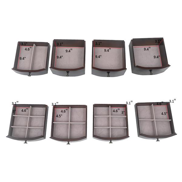 4. Drawer Height: First to sixth 3.1" / 7.9cm / seventh to eigth 5.1" / 13cm