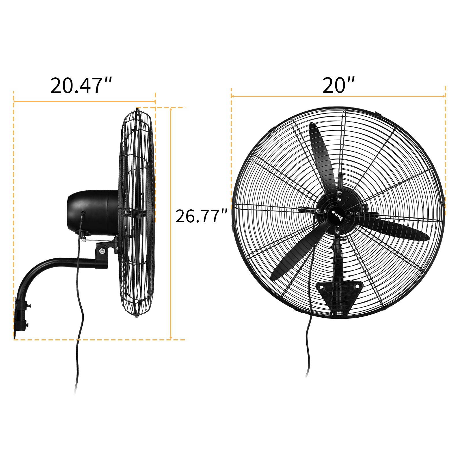 1.【Oscillating & Tilt Function】: Our 20'' oscillating wall mount fan features a 80-degree horizontal oscillation and a 75~105-degree vertical tilt manual adjustment for optimal airflow control.You can save a lot of space and distribute better the air by mounting them as height as you need.The design of manually adjusting the shaking mode is easier to monitor, effectively preventing children from misoperation and reducing safety risks.