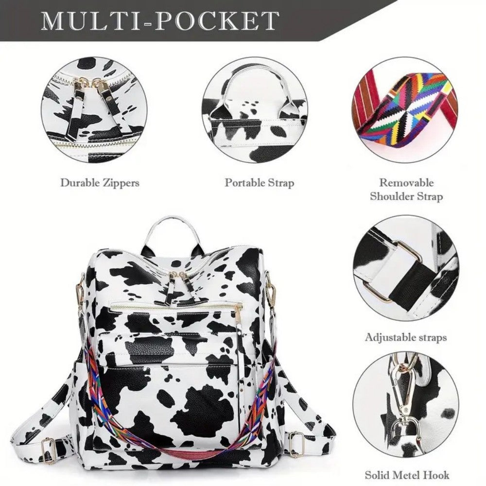 PU women's shoulder bag, stylish multi-functional backpack with zipper opening and closing, suitable for travel