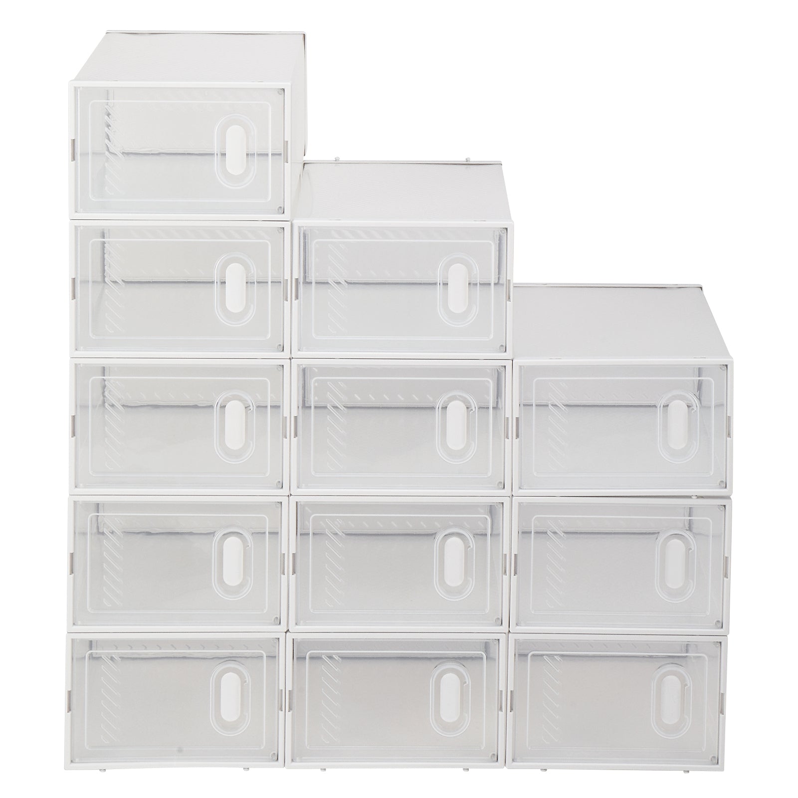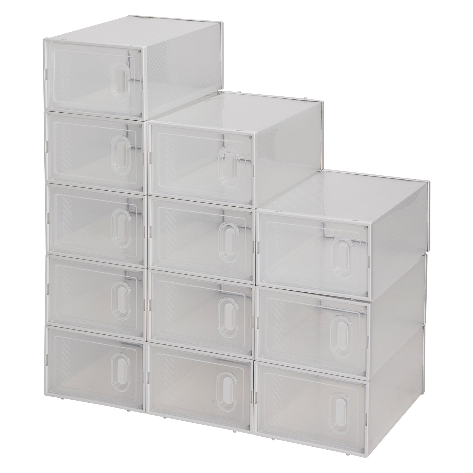 Shoe Storage Boxes 12 Pack Clear Plastic Stackable - White