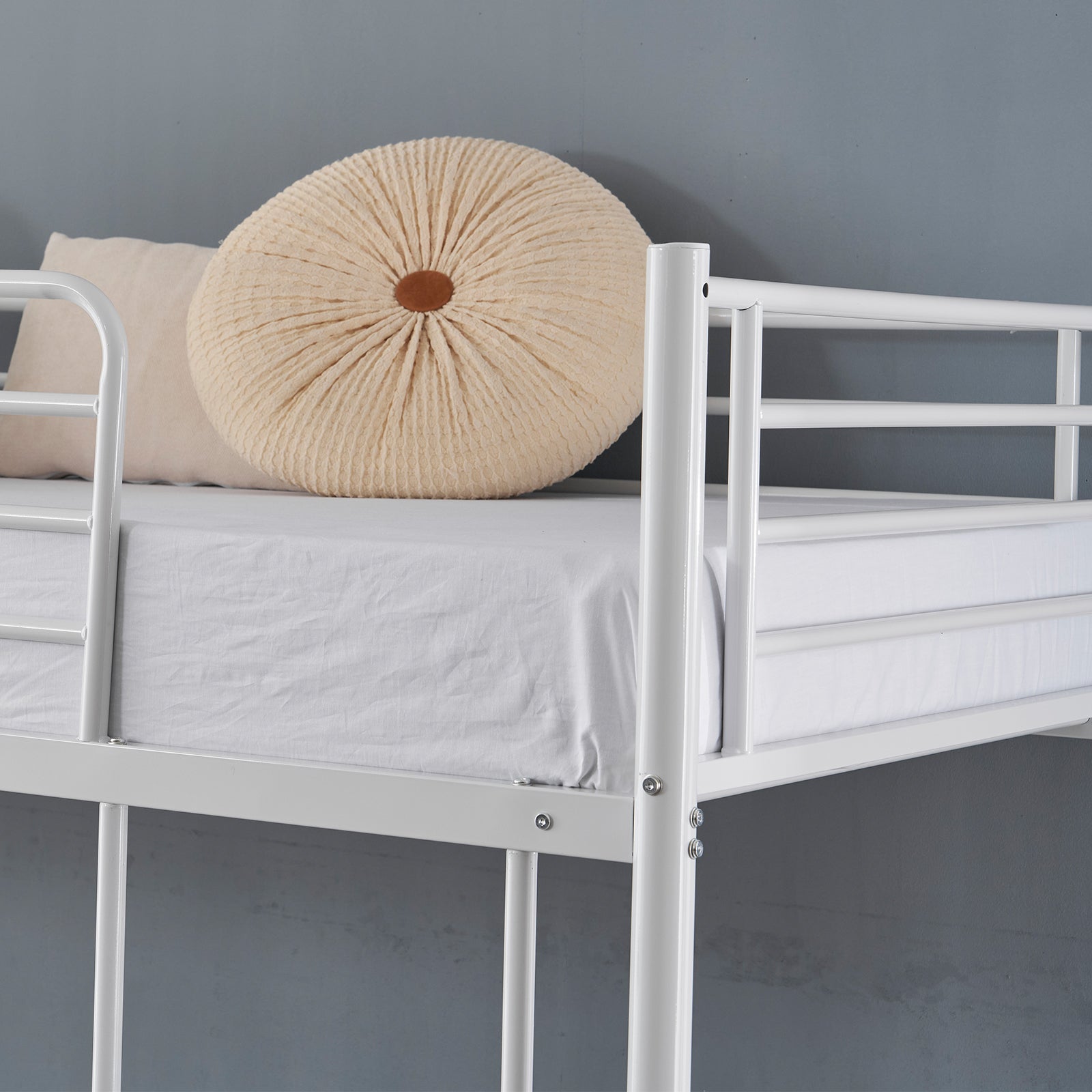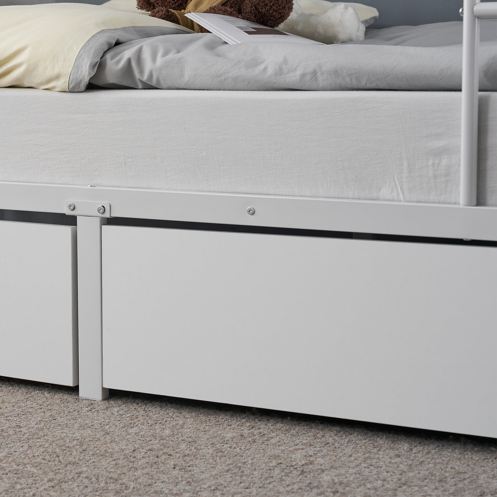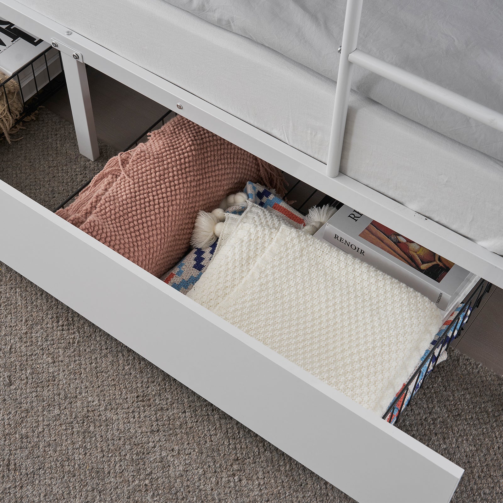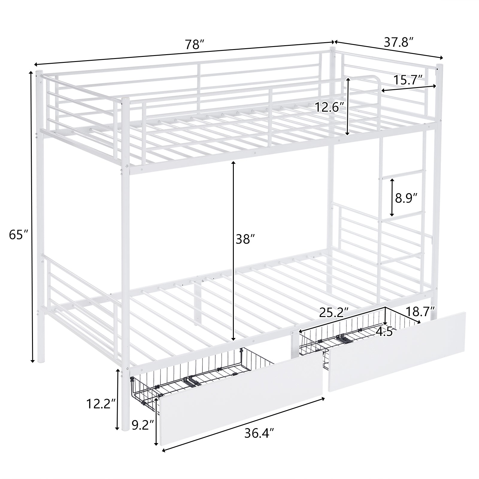 Twin Over Twin Bunk Bed with Two Storage Drawers & Full-Length Guard Rail, Heavy Duty Metal Bunk Bed for Kids Teens Adults, White