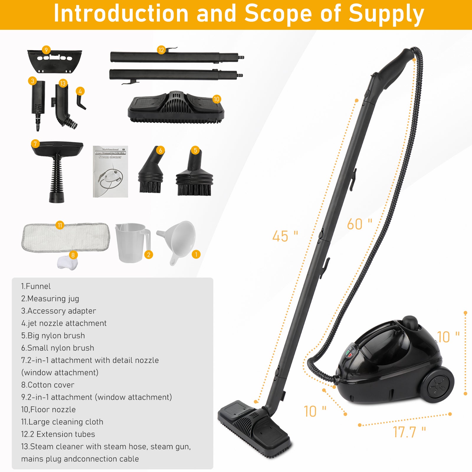 VSC28A Multipurpose Steam Cleaner with 13 Accessories, 1.2L tank Portable Steamer for Floors, Carpet, Windows, Cars and More,ETL Certificated 1500W